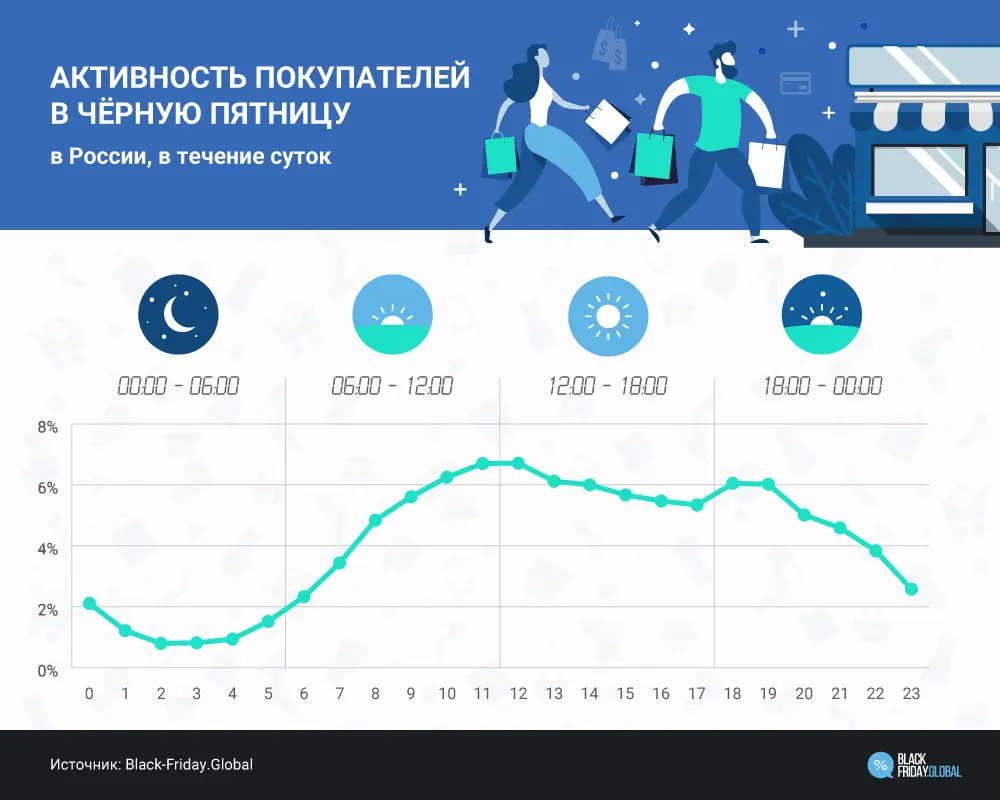 Исследователи Picodi.com рассмотрели явление с разных сторон: в какое время суток наступает пик активности покупателей, с каких устройств чаще всего совершаются покупки, сколько жители разных страх готовы потратить денег в этот день и на какие товары.