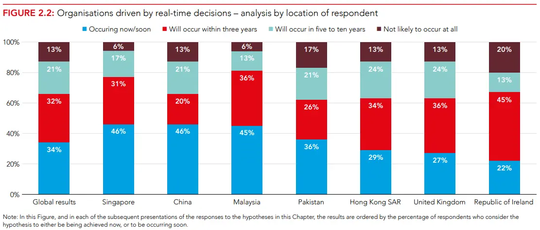 Четверть (25%) респондентов считают, что это происходит уже сейчас, еще 47% считают, что переход к этому случится в течение пяти-десяти лет. Тем не менее, многие опрошенные считают, что игнорировать релевантность исторических данных было бы ошибкой.