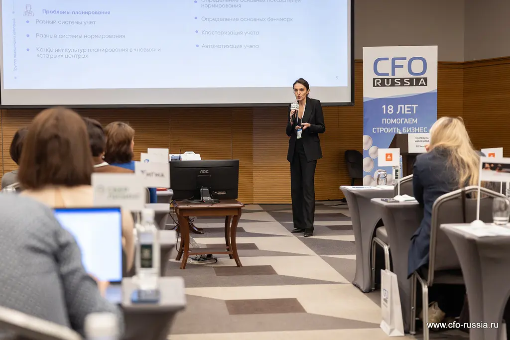 Екатерина Жилякова, заместитель директора по экономике и финансам ГК «Эксперт», выступила с докладом «Планирование в условиях турбулентности». Она представила этапы трансформации системы управления финансами компании: от экстенсивного регионального роста к модульной платформенной бизнес-модели. Эксперт подробно разобрала проблематику разделения контуров финансирования по бизнес-форматам и внедрение системы трансфертного ценообразования между независимыми модулями.