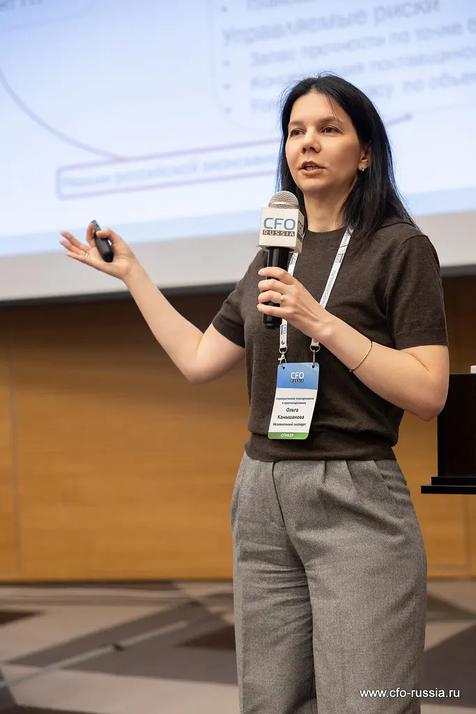 Затем Ольга Камышанова, независимый эксперт, выступила с докладом «Планирование в условиях падения спроса и сокращения рынка: как адаптировать цели и ресурсы бизнеса». На примере кейса по покупке и трансформации производственного актива эксперт рассказала о переходе от целей роста к стратегии выживания. Ольга Камышанова объяснила, как в условиях сжатого спроса сместить фокус на маржинальность и денежный поток, а также перестроить систему KPI.