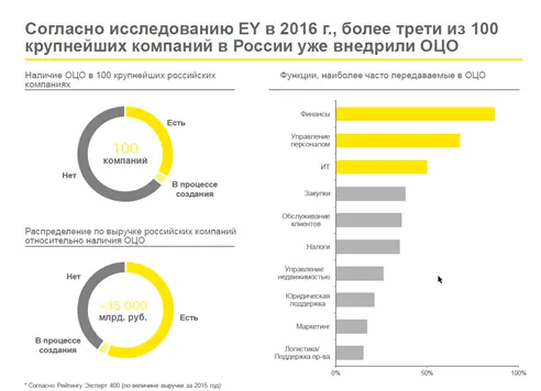 Согласно исследованию EY в 2016 г., более трети из 100 крупнейших компаний в России уже внедрили ОЦО.